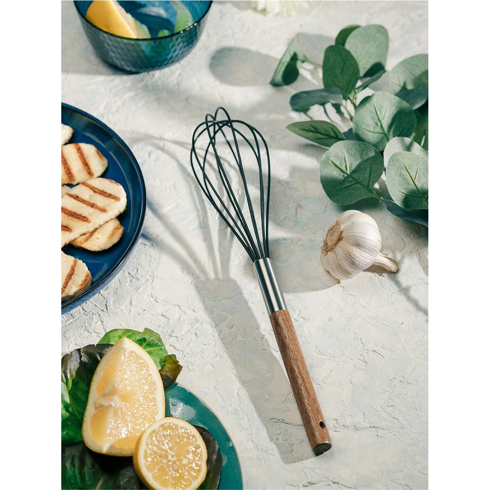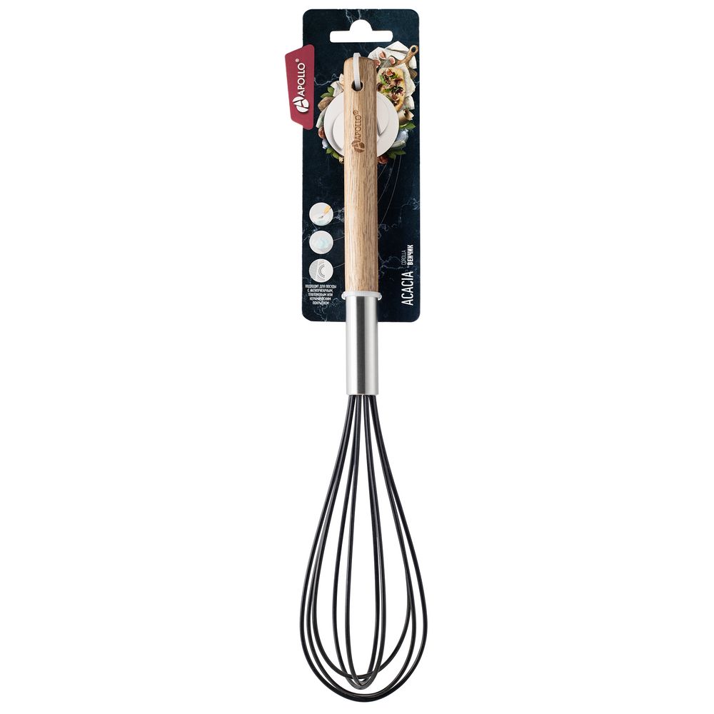 Венчик Acacia предназначен для взбивания холодных и горячих продуктов. Благодаря силиконовому покрытию не царапает поверхности и подходит для использования в посуде с антипригарным, тефлоновым или керамическим покрытием.Перед первым использованием помойте венчик с применением щадящих моющих средств.