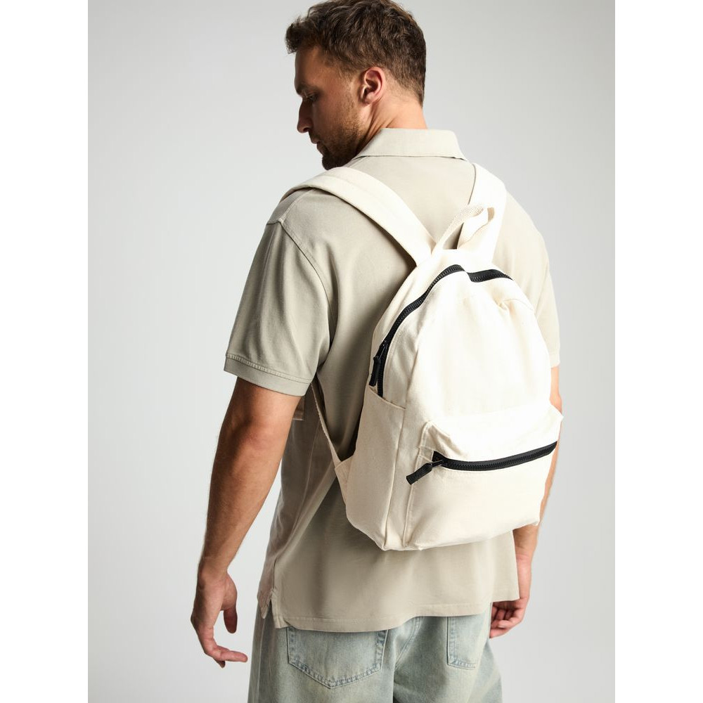 Легкий рюкзак в экостиле — из плотного неокрашенного хлопка с контрастными деталями.