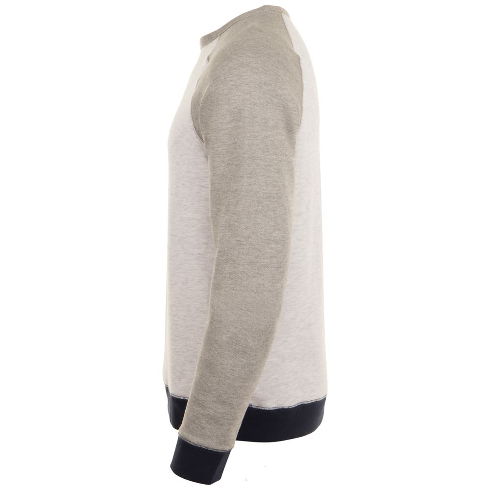 Трехцветный свитшот в стиле 80-х с рукавом реглан. Лейбл производителя в боковом шве изнутри, в шве горловины — только бирка с размером, что позволяет вам нанести свой логотип.