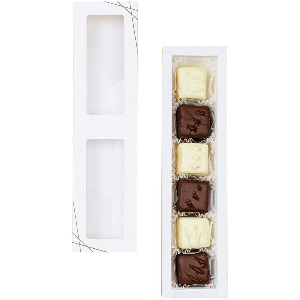 Каждая конфета ручной работы в этом лаконичном наборе — это восторг для истинных гурманов. Нежный марципан в начинке обрамляется молочным или белым шоколадом, создавая обволакивающую мягкую сладость. Молочный шоколад добавляет к нежному вкусу марципана едва уловимую сладость и кремовую глубину, а белый — подчеркивает яркие миндальные нотки.