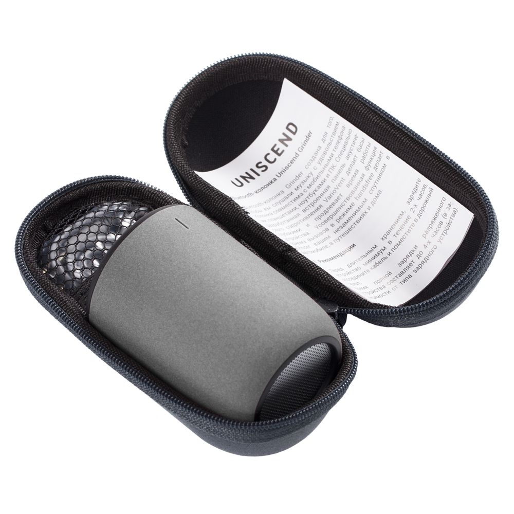 В комплекте: Bluetooth-колонка, кабель microUSB для зарядки, кабель AUX, удобный кейс на молнии.