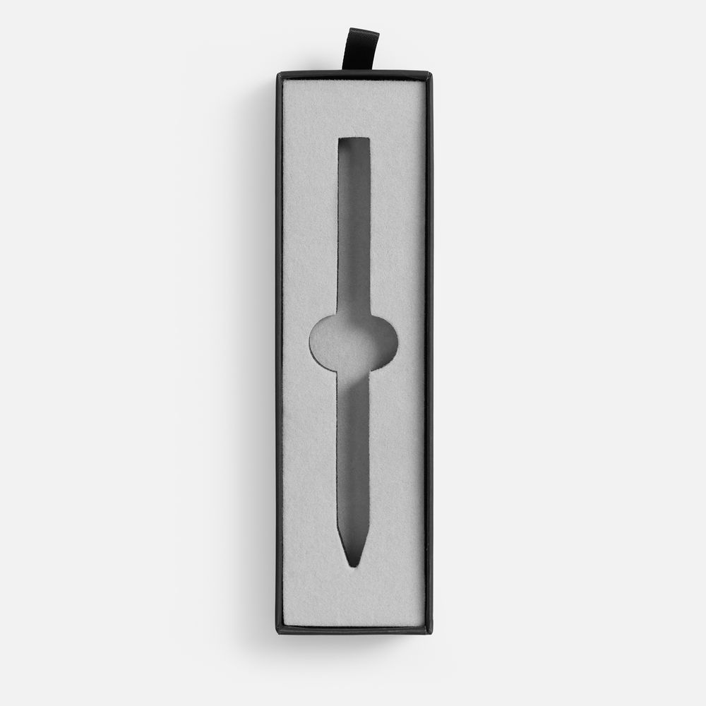 Картонный футляр с покрытием софт-тач с флокированным ложементом для одной ручки.