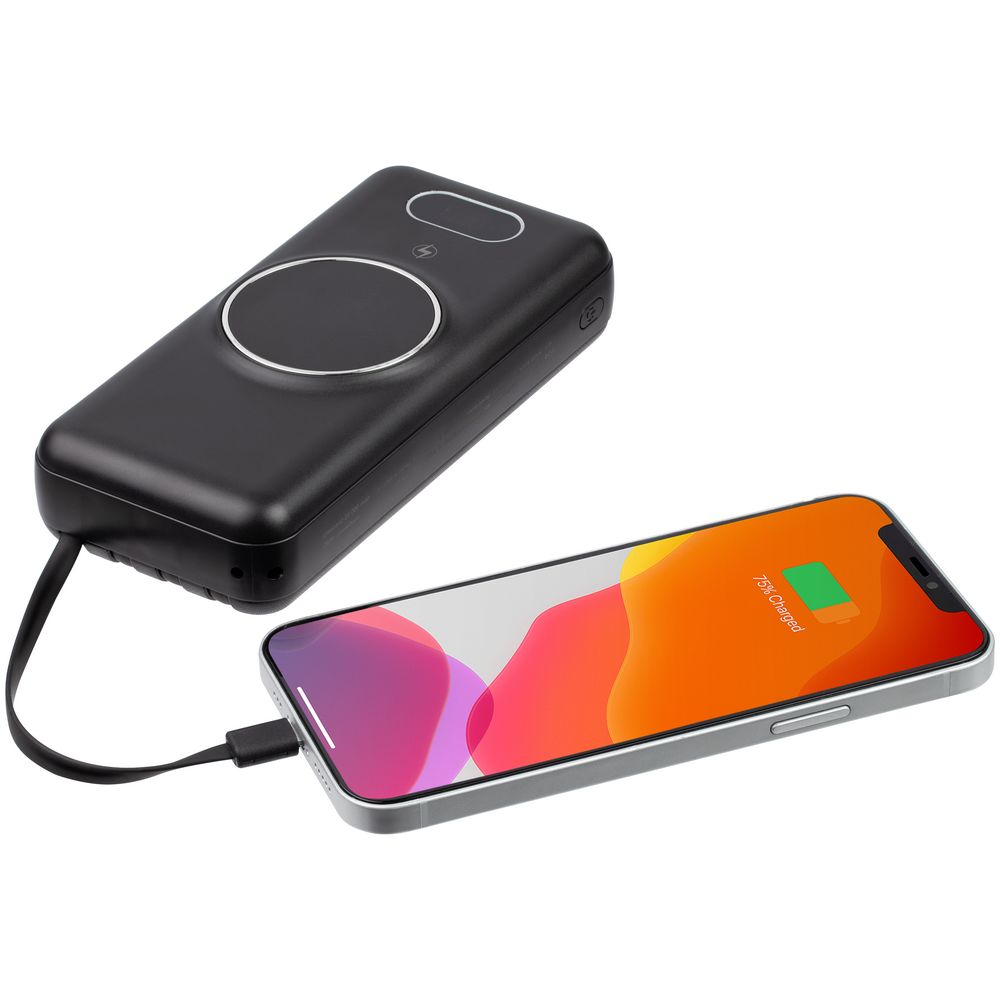 - Для заряда современного (от 2022 года) смартфона настоятельно рекомендуется использовать комплектный кабель производителя. Встроенные кабели аккумулятора могут не работать с некоторыми iOS-устройствами Apple (политика компании). Претензии по совместимости вложенного кабеля со смартфонами не принимаются.